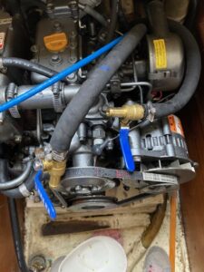 2025年10月26日 あげは号には2GM20Fは間接冷却なので あたたかいクーラントを循環させるエンジン熱を活用したマリンヒーターがついています。そのホースに2個の止水栓をと。でも、