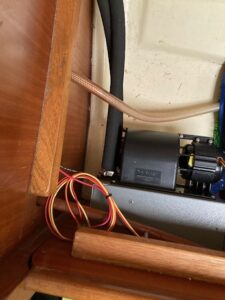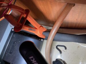 長いホースだったのでエンジン横のバースの下、ギャレーの中、それにこのヒータ本体のそばと3か所x2本なので6か所で切り取り、ヨットの下に、かなり長いし、重いし、これに液体が満たされていたので結構の重量減になったはず。