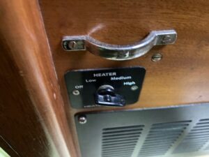 現マリンヒーターに止水栓を追加し使い勝手を良くして (これまではコックがないので冬以外にエンジンをかけると暖められたクーラントが常に艇内を巡って死にそうなぐらいの高温キャビンになってしまって寝られないほどだった) 止水栓でコントロールするのとホース等からの冷却水漏れに対応できるようにと、 エンジン使用時やクーラントが温かいときに温風と輻射熱で 上手に寒いときだけ快適キャビン化しようと思いました。できればFFヒーターと併存させようかなと思案しましたが、ホースも自体がすでに弱っていそうなので外洋でクーラント漏れを起こす危険性 や クーラントやホースの重量も結構な重さなので艇の軽量化を考えないと便利さだけを追い求めると喫水がどんどん深くなって艇の性能が犠牲になるだけですので、作業途中に考え直してマリンヒーターを艇から降ろしてFFヒーターの温風による暖房だけにすることにしました。