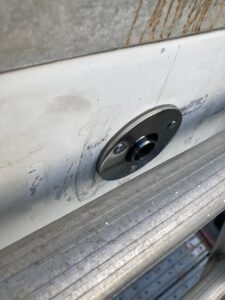 Ebayで買ったFFヒーター排気用スルハルは外径36㎜と純正のモノより少し大きい。そのために新西友人は近くのコーナンPROにわざわざ電話をしてくれて37mmのホールソーがあるかを確認。 さっそく二人でコーナンで入手。穴はばっちりあきました。