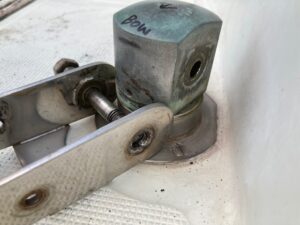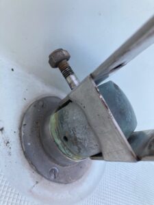 アルページュ30のこのピンの抜き方どなたかご存じですか?長期航海に備えてラダーを外して点検整備しようと思っているのですが、ラダー下の受け金具は外れましたが、写真のようなボスが外れそうにないのです。細いピンがあるのですがこれでラダーシャフトをとめているのかな?