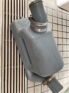 地区初常会の前に 艇から降ろしてきたウォーターロック君を私と一緒にシャワーしてキレイにしようと思ってました。どれどれパイプOUT側の外径は50mmか51mmだな。IN側も径は同じホースで大丈夫そう。
