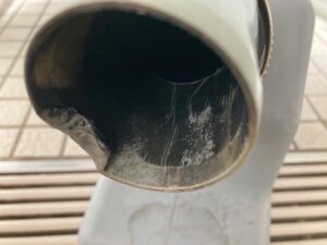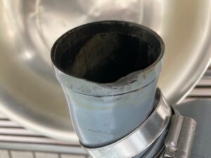 次に中を覗くと。 ギョギョ。 入口IN側の一部が溶けている。